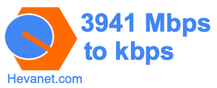 Converting 3941 Mbps to kbps will tell you how much the equivalent transfer rate of 3941 Megabits per second is in kilobits per second.