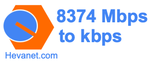 Mbps is short for megabits per second and kbps is short for kilobits per second. Therefore, 8374 Mbps to kbps is the same as 8374 Megabits per second to kilobits per second.