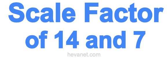 What is the Scale Factor of 14 and 7? What is the Scale Factor between 14 and 7? More specifically, what is the Scale Factor from a length of 14 to a length of 7? In other words, what (Scale Factor) can you multiply by 14 to get 7 as illustrated below?: