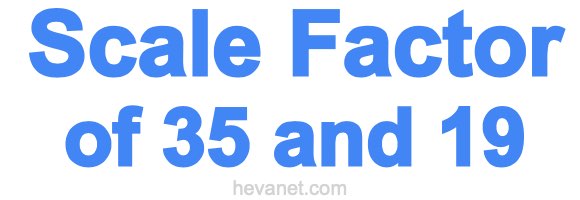 What is the Scale Factor of 35 and 19? What is the Scale Factor between 35 and 19? More specifically, what is the Scale Factor from a length of 35 to a length of 19? In other words, what (Scale Factor) can you multiply by 35 to get 19 as illustrated below?:
