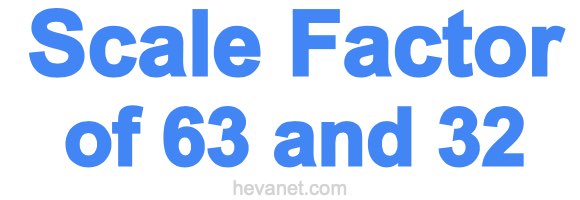 What is the Scale Factor of 63 and 32? What is the Scale Factor between 63 and 32? More specifically, what is the Scale Factor from a length of 63 to a length of 32? In other words, what (Scale Factor) can you multiply by 63 to get 32 as illustrated below?: