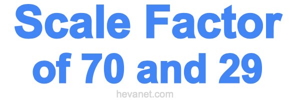 What is the Scale Factor of 70 and 29? What is the Scale Factor between 70 and 29? More specifically, what is the Scale Factor from a length of 70 to a length of 29? In other words, what (Scale Factor) can you multiply by 70 to get 29 as illustrated below?: