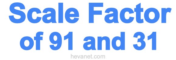 What is the Scale Factor of 91 and 31? What is the Scale Factor between 91 and 31? More specifically, what is the Scale Factor from a length of 91 to a length of 31? In other words, what (Scale Factor) can you multiply by 91 to get 31 as illustrated below?: